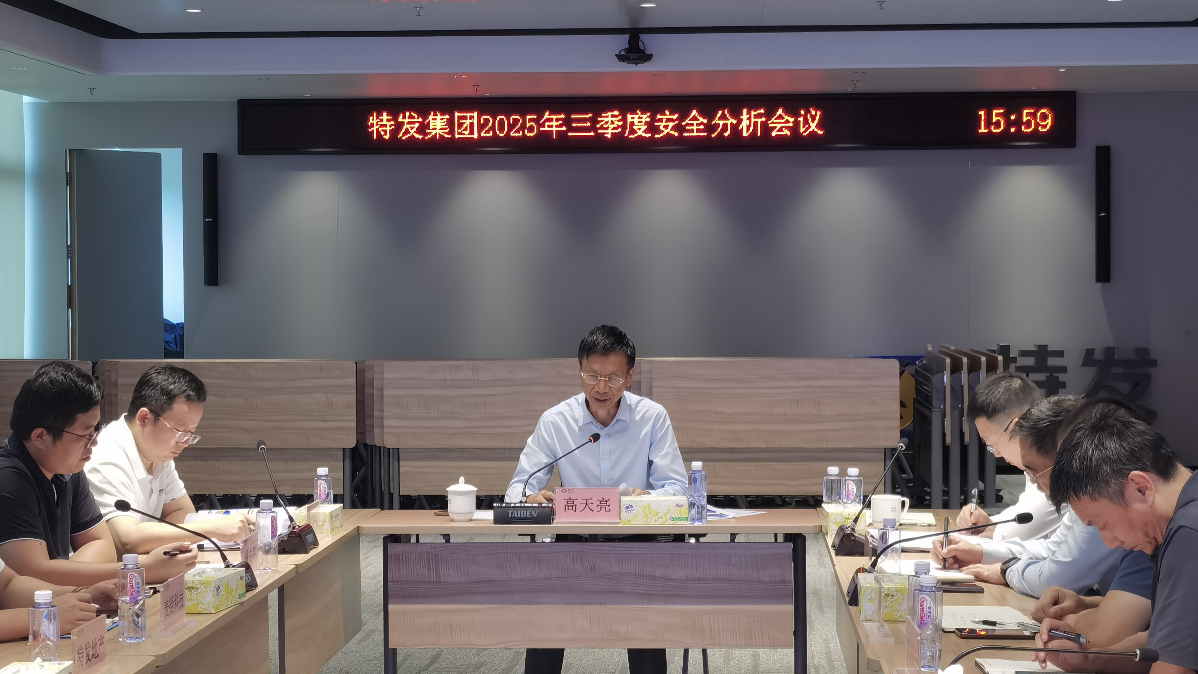 2025年9月25日下午,特發(fā)集團召開2025年第三季度安全分析會。集團總裁、安委會主任高天亮出席會議并講話,集團副總裁、安全總監(jiān)李承主持會議。集團安委辦、各企業(yè)主要負責人、分管安全工作領導及安全管理部門負責人參會。會議復盤了前期安全工作的成效與不足,充分研判當前風險形勢,部署四季度重點防控任務,進一步壓緊壓實各級安全管理責任。